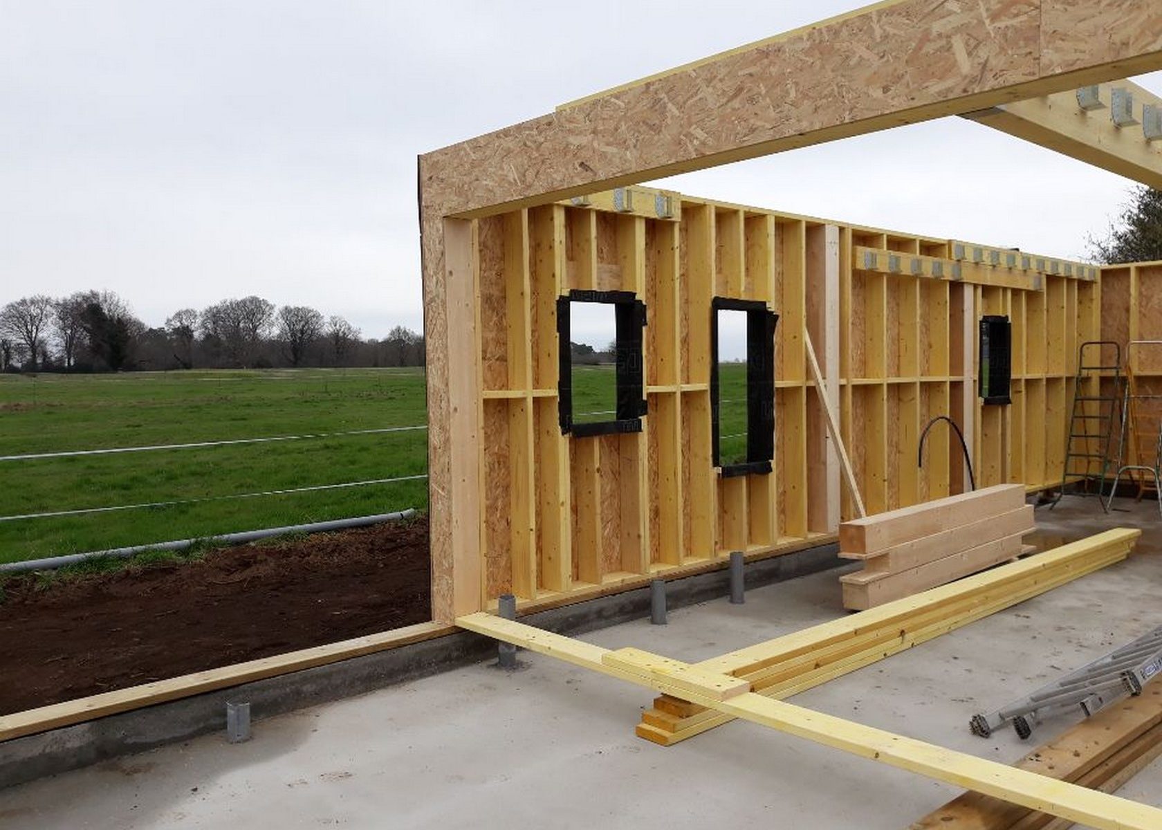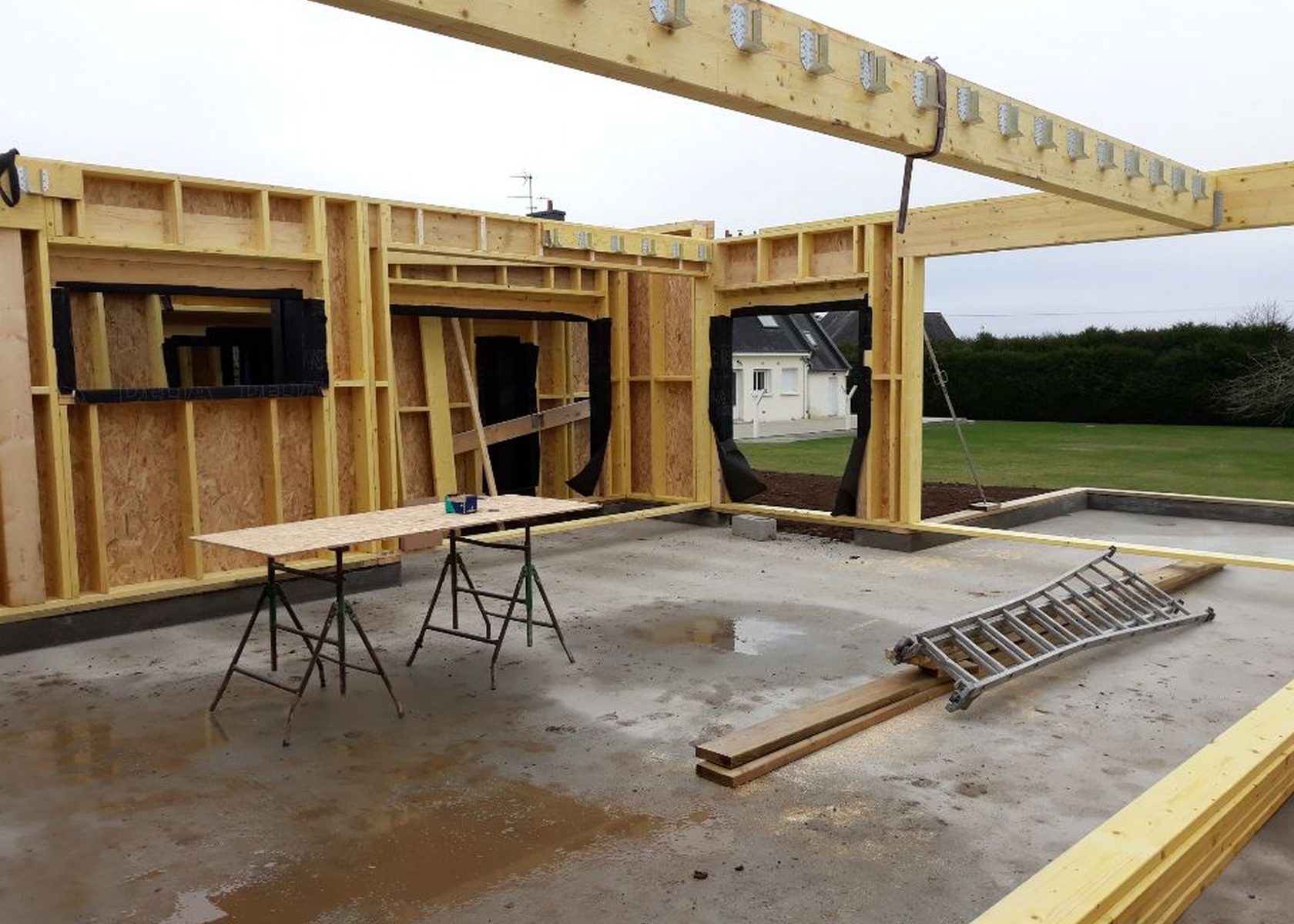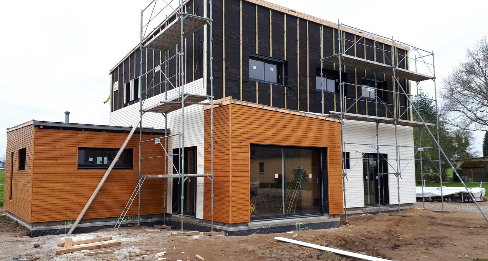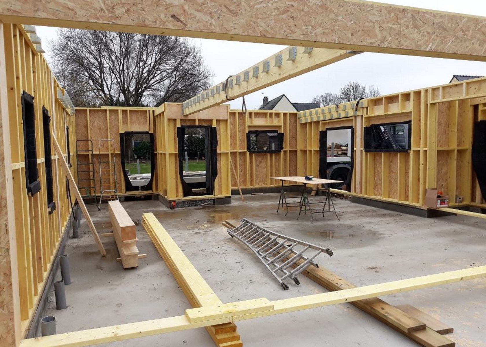 Chantier de construction maison à ossature bois