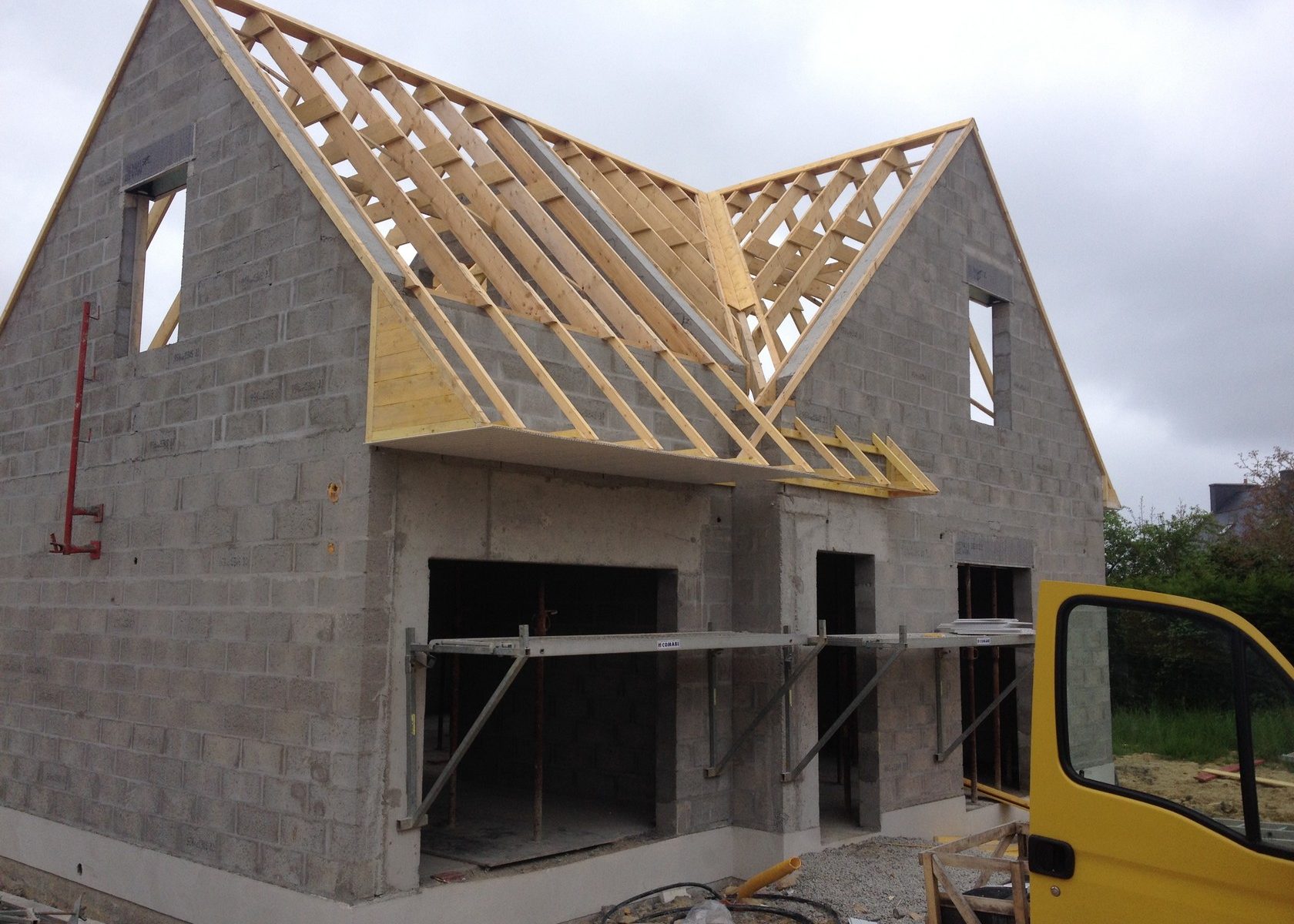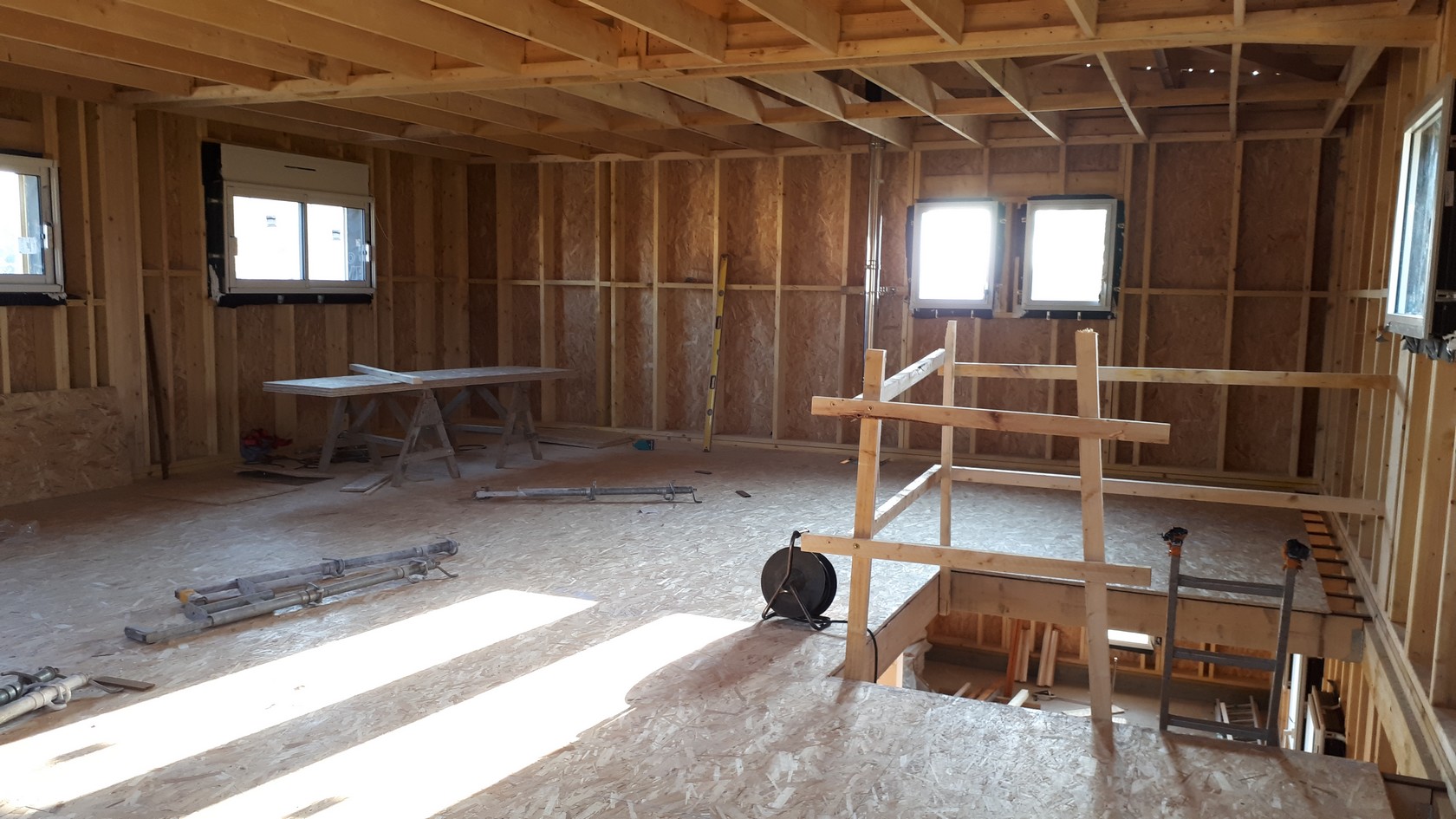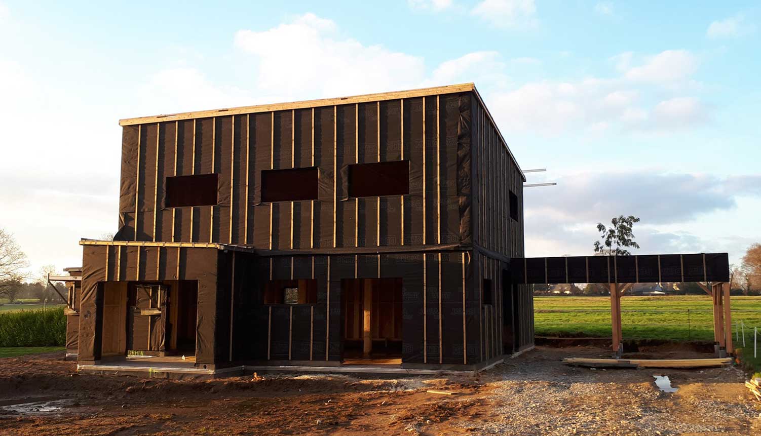 Chantier de construction maison à ossature bois