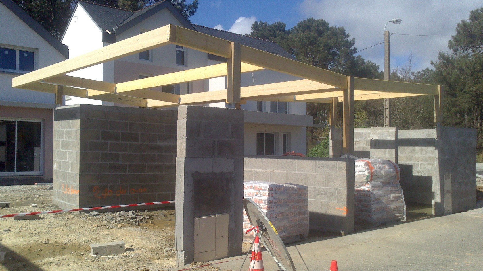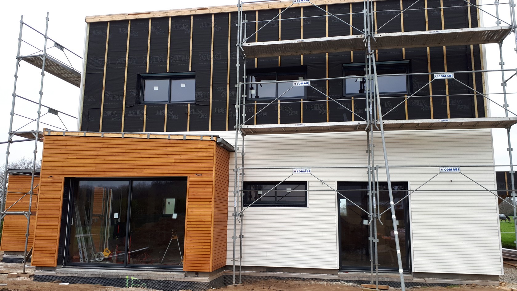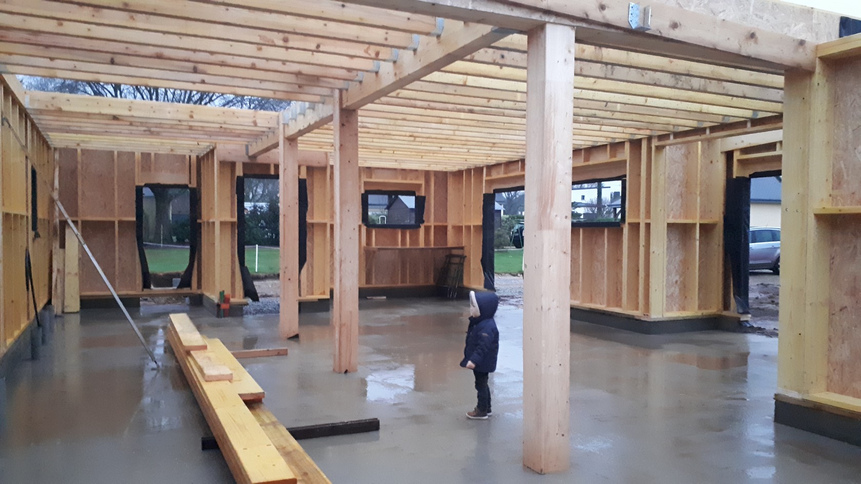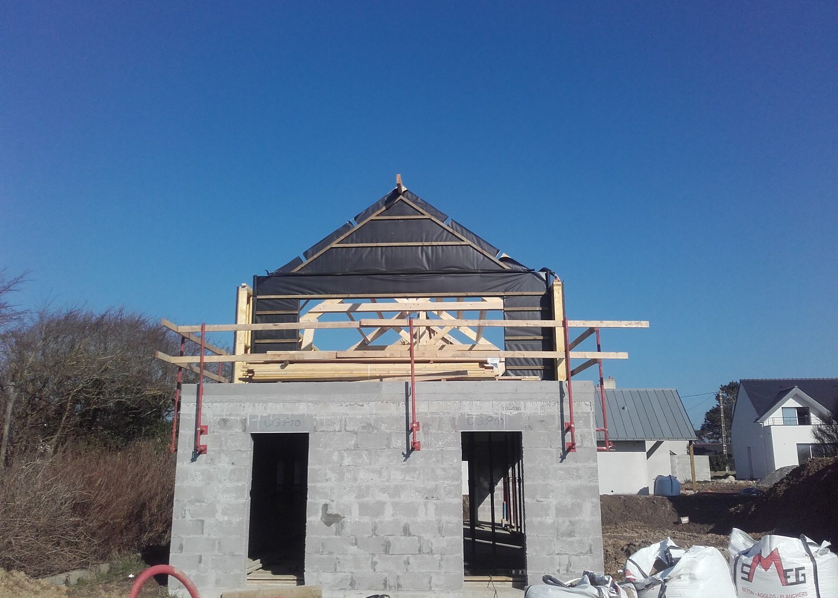 Chantier de construction maison à ossature bois