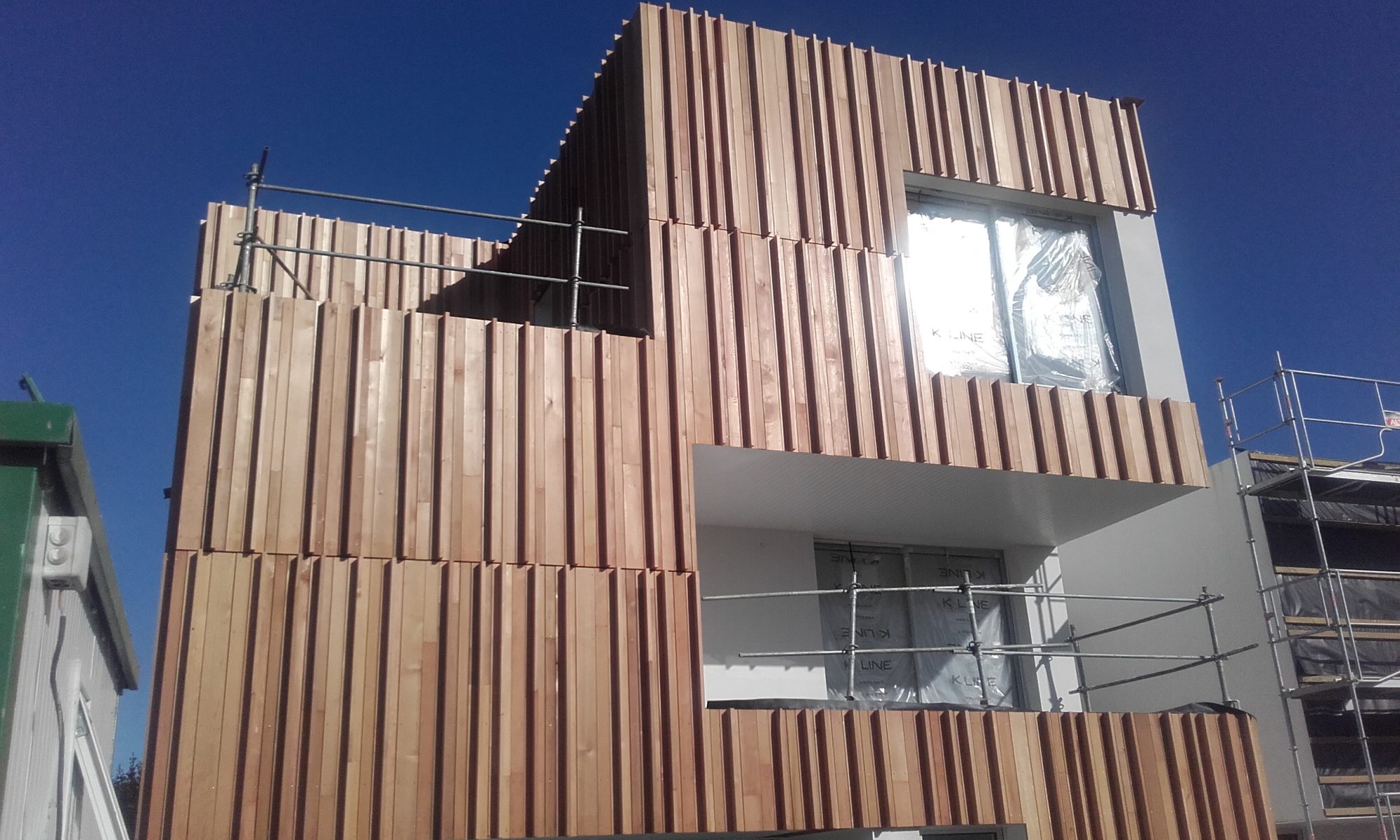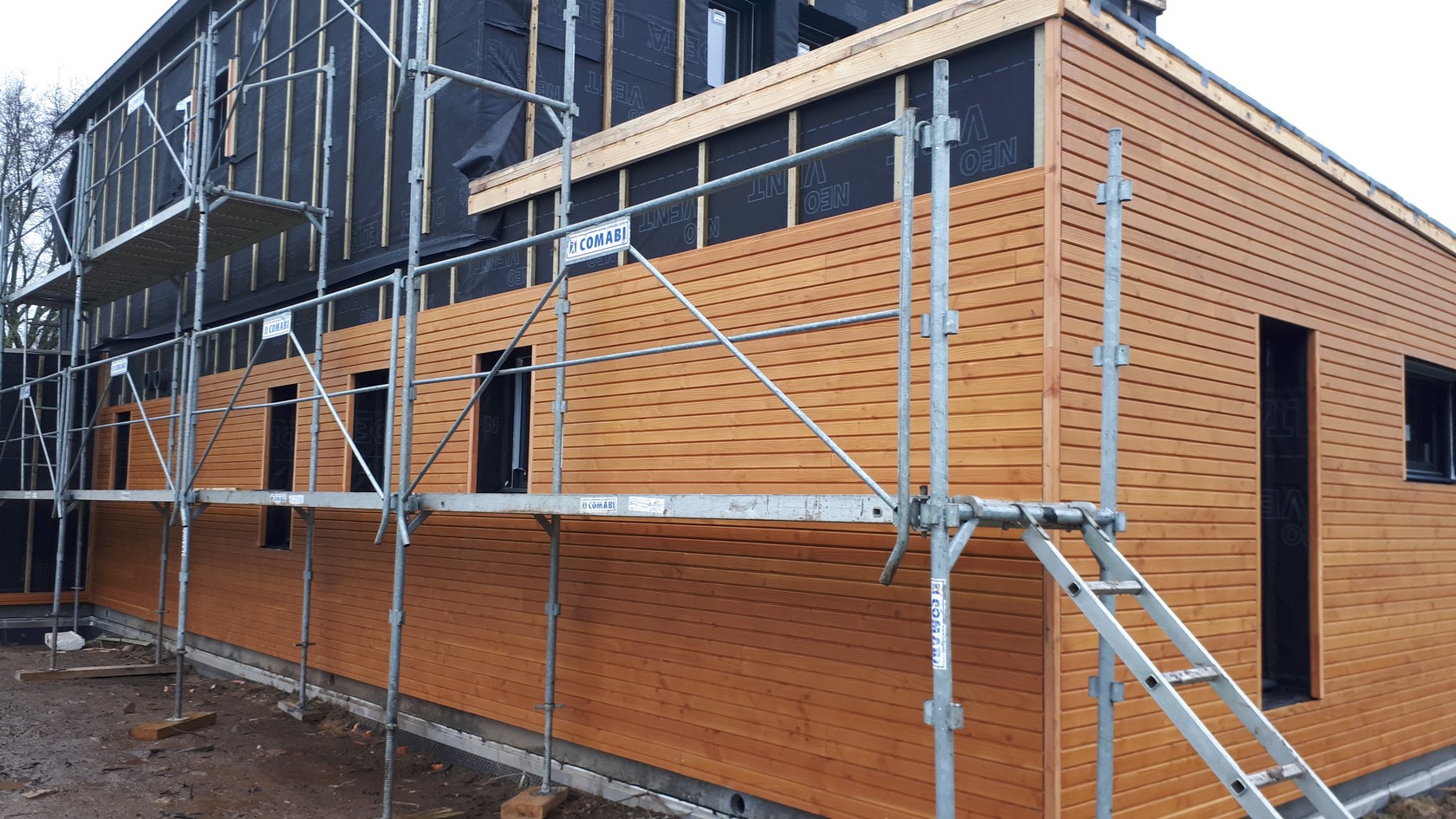 Bardage Bois d'un immeuble avec isolation par l'extérieur