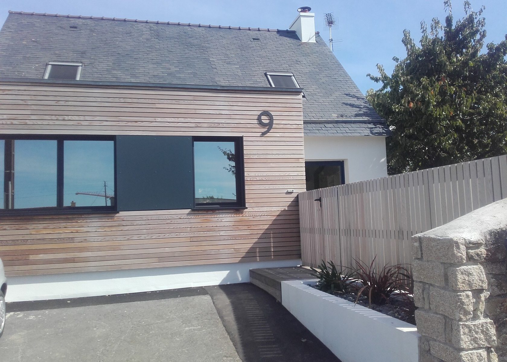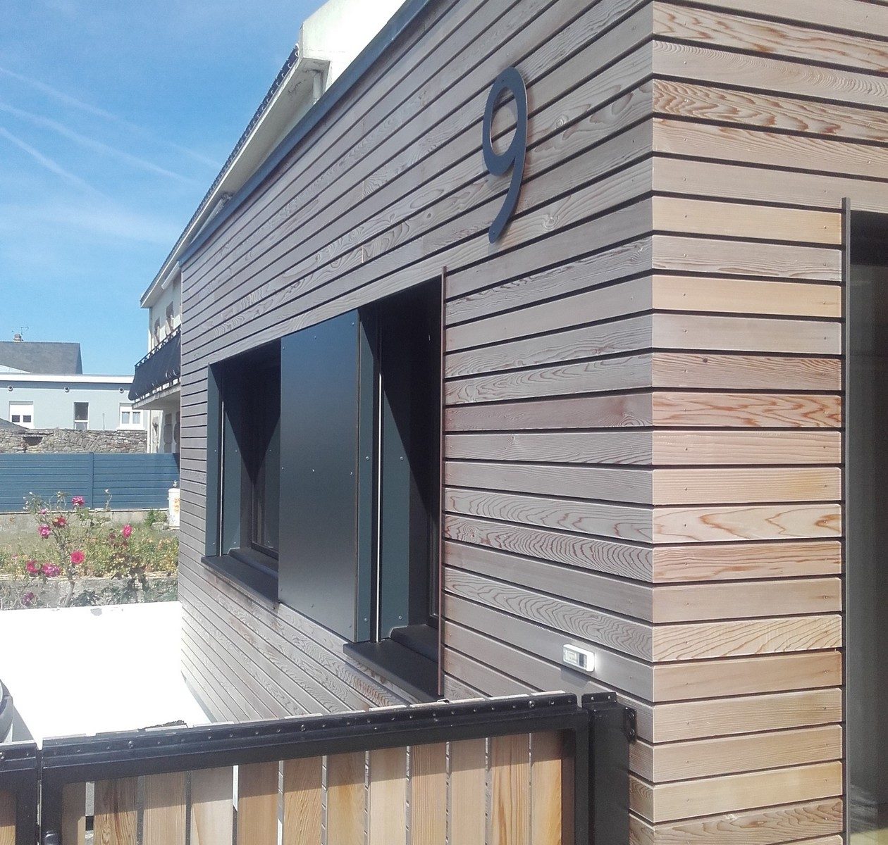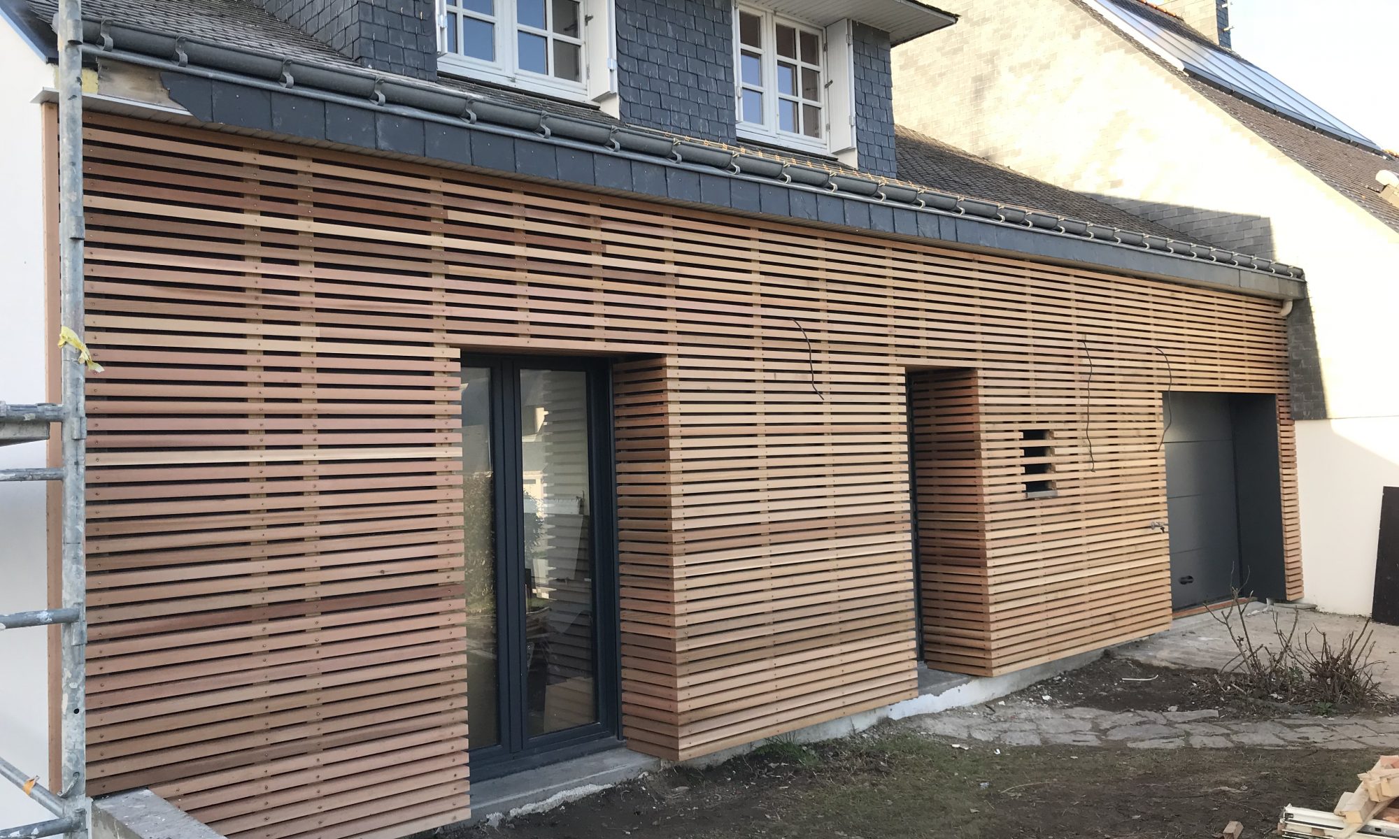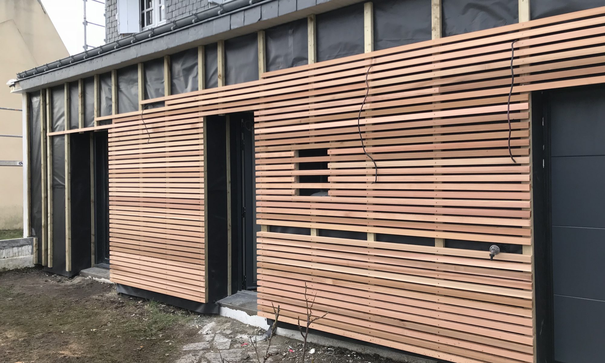 Bardage bois d'une maison individuelle avec isolation par l'extérieur