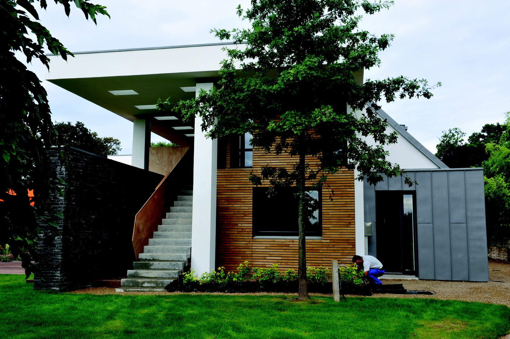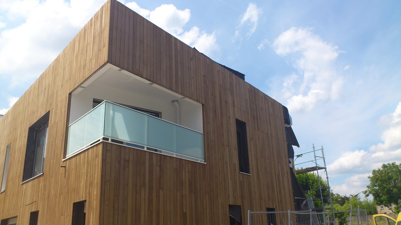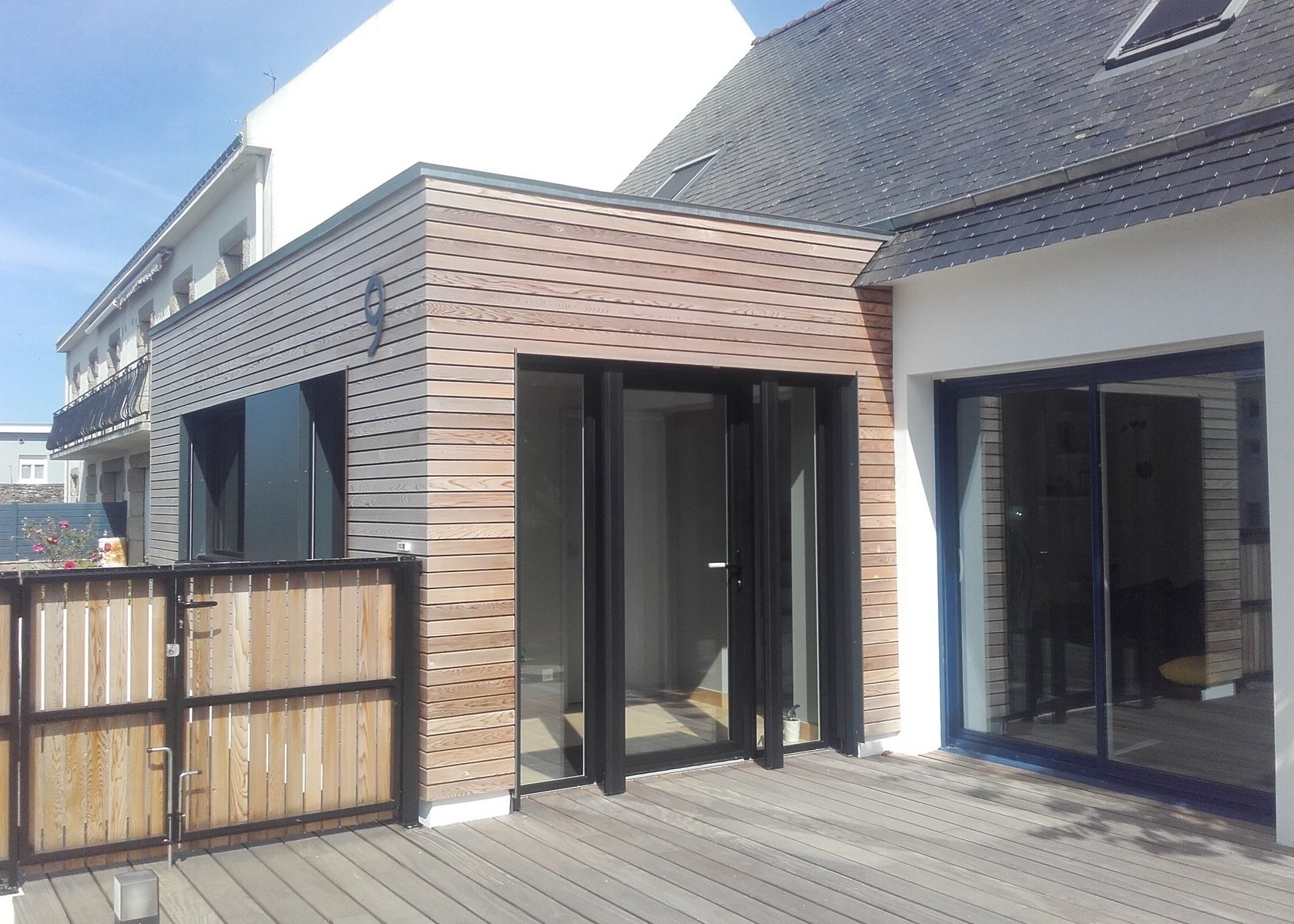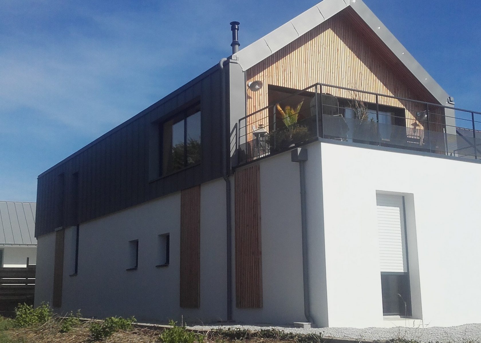 Bardage bois d'une maison individuelle avec isolation par l'extérieur