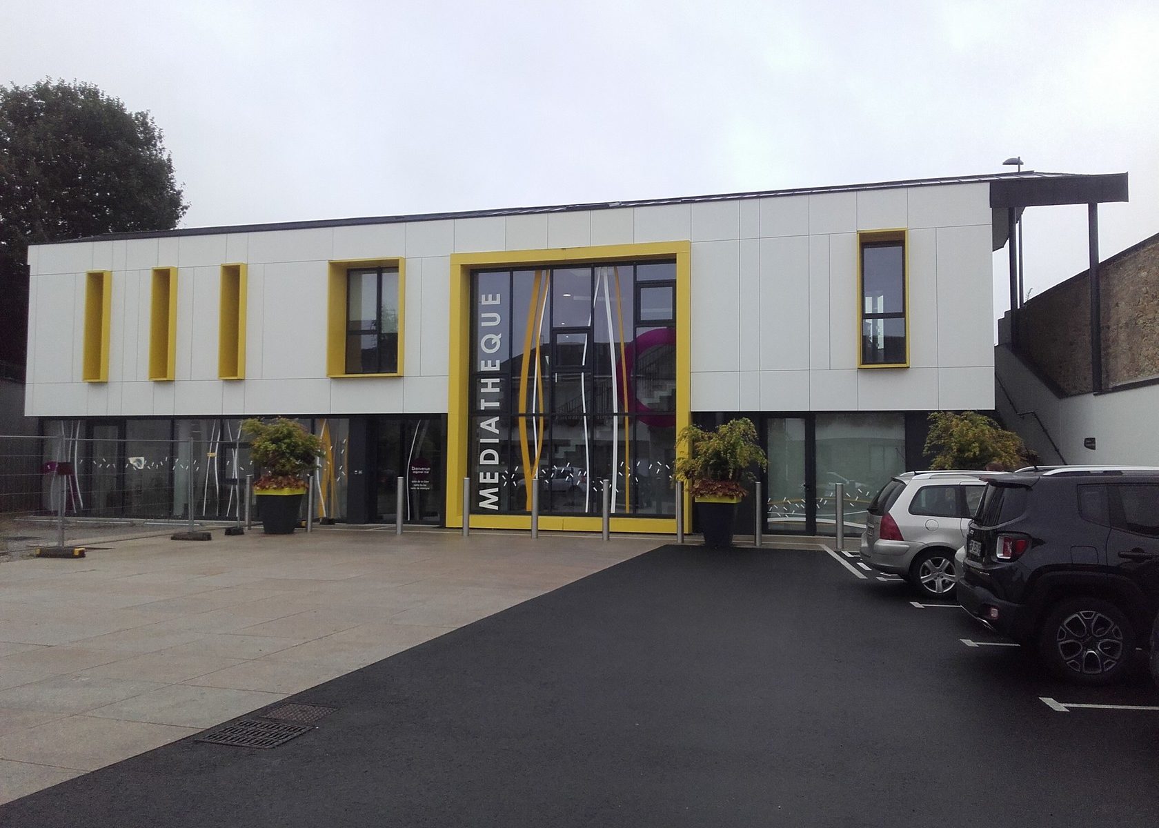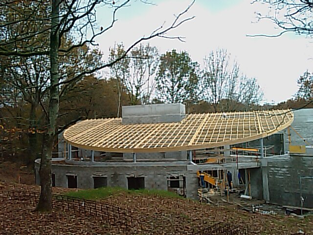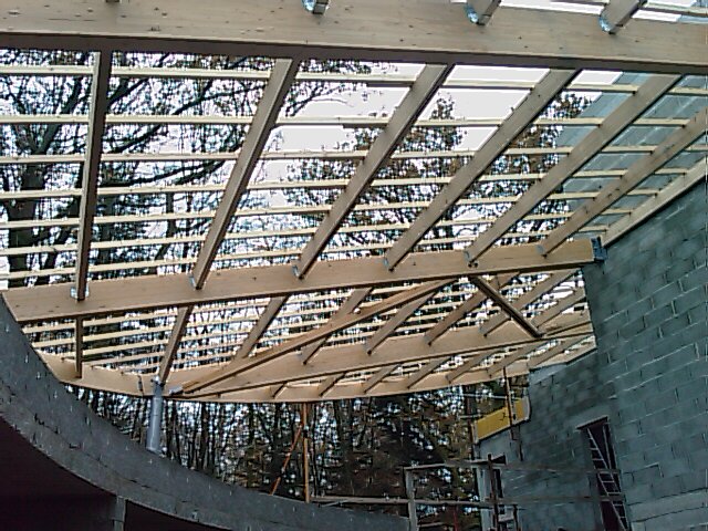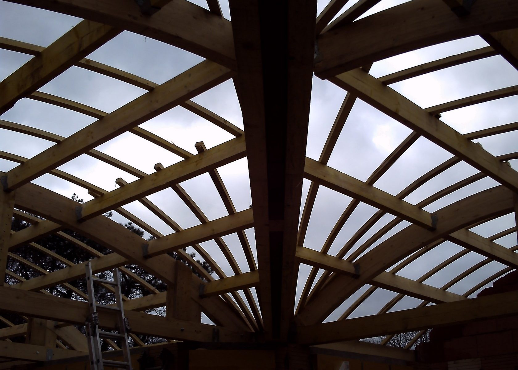 Charpente de la médiathèque vue du sol