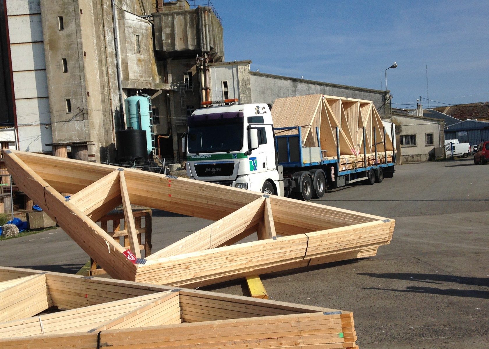 Charpente de batiment industriel en lamellé collé